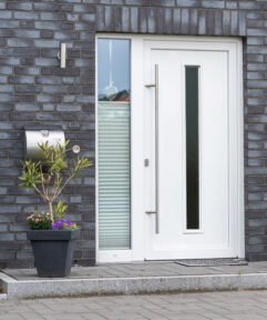 Moderne weiße Haustür mit Glasscheiben